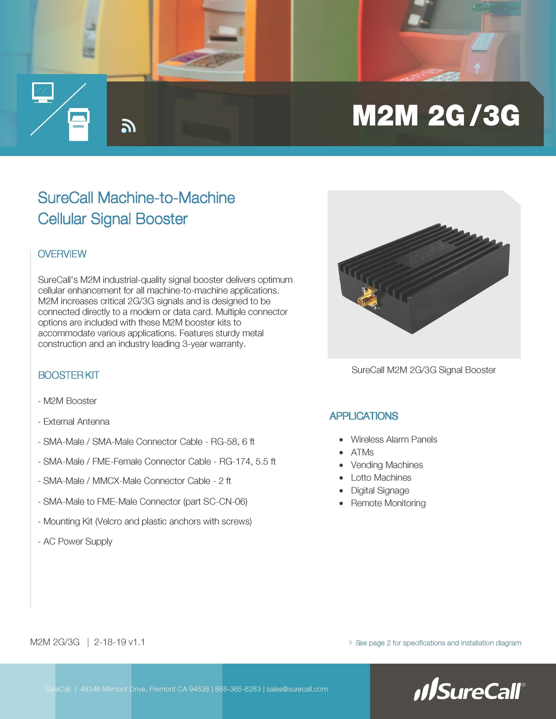 SureCall, M2M 15dB single-band Verizon LTE M2M booster kit for ATM's, vending machines, wireless alarm panels or modems. Includes magnetic antenna and power adapter.220.00