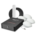 SureCall Force5 2.0 cell phone signal booster kit, with Sentry Remote Monitoring built-in, increases cellular coverage for areas 25,000+ sq. ft. for all carriers voice, text and 4G LTE data signals. Kit includes 30 ft. and five 75 ft. lengths of SureCall 400 low loss coax cable, 4-way splitter, outdoor Omni antenna and four indoor Ultra Thin dome antennas.