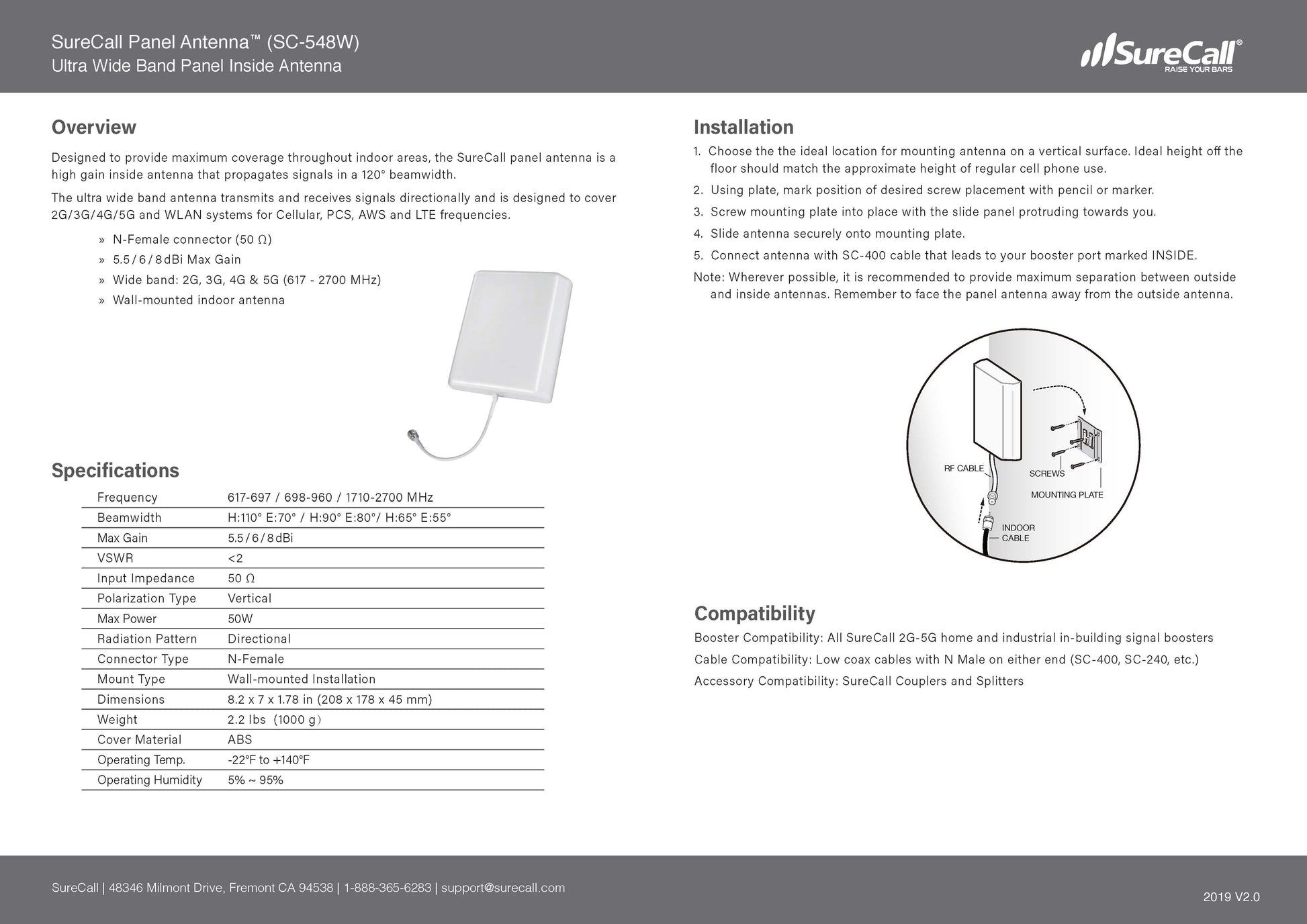 Directional Panel 50 ohm Antenna 617 - 2700 MHz (N-Female Connector) 5.5 to 8 dBi